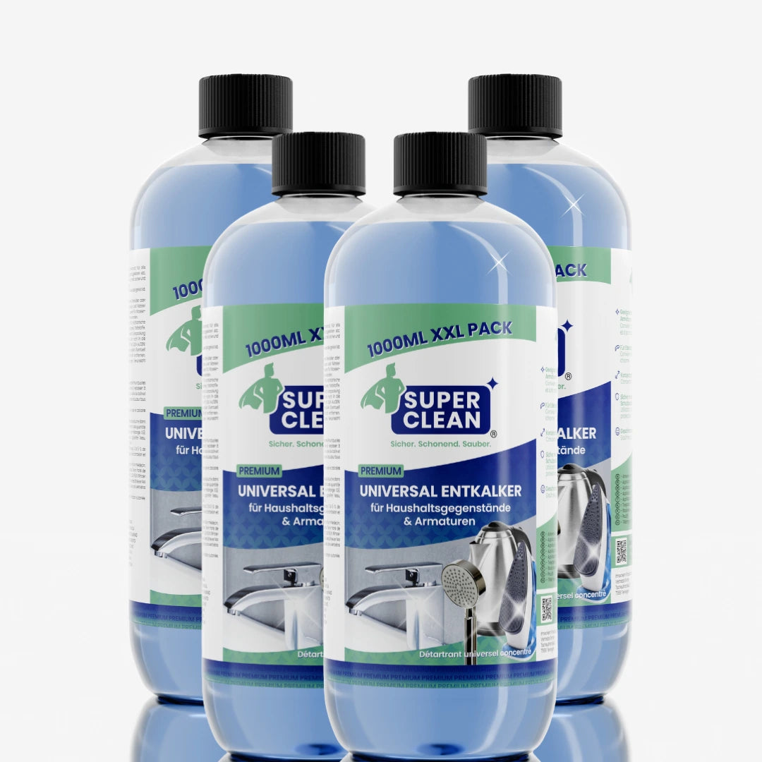 Kalkablagerungen an Wasserhähnen, in Wasserkochern oder auf Fliesen können die Optik beeinträchtigen und die Funktion einschränken. Unser Universal Entkalker 1 Liter wurde entwickelt, um Kalk von verschiedenen Oberflächen zu lösen – für den Einsatz in Bad, Küche und weiteren Bereichen.