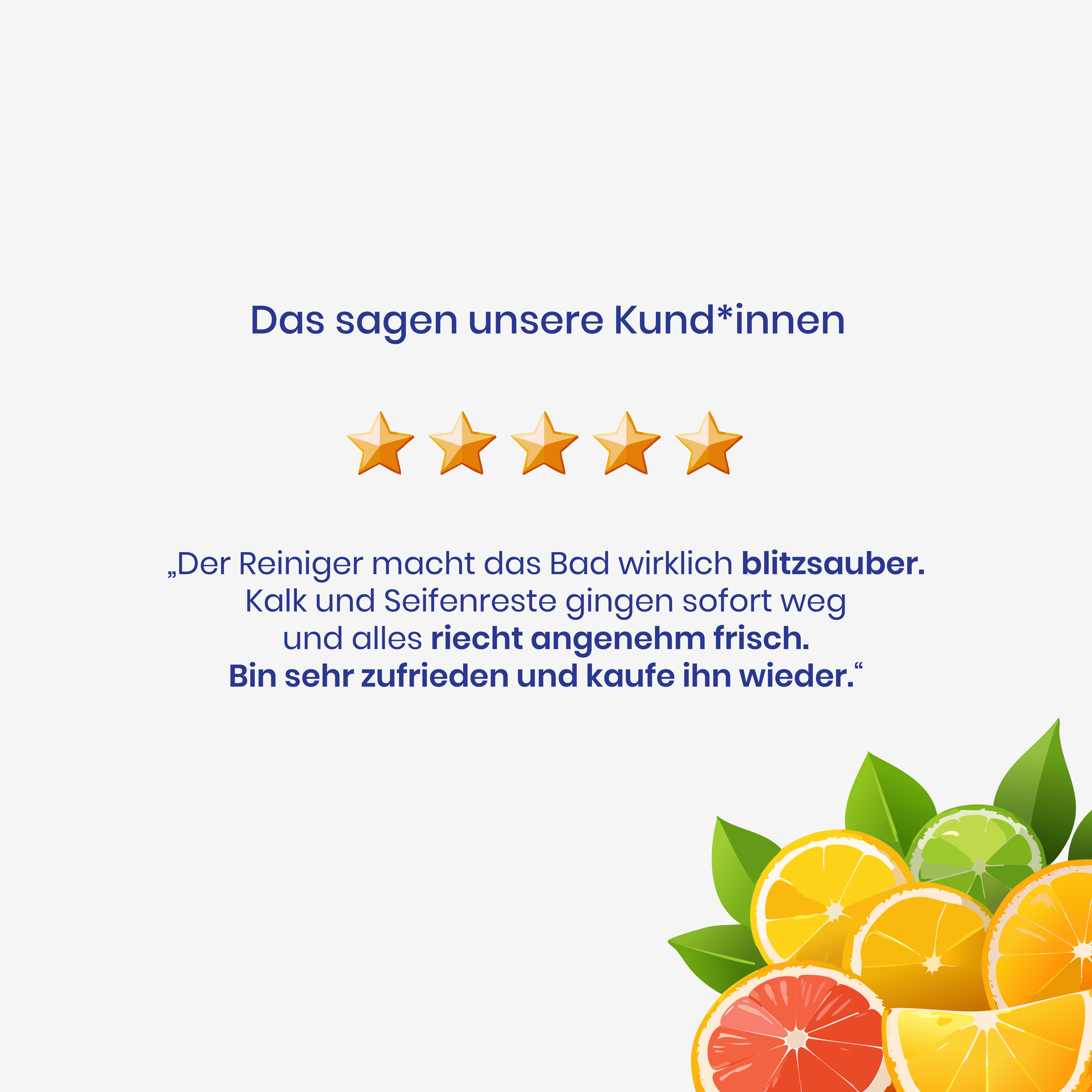 Perfekt kombinierbar mit unserem Reinigungszubehör! Wir empfehlen das "Bad-Frische Komplett-Set" für ein glänzendes Badezimmer.